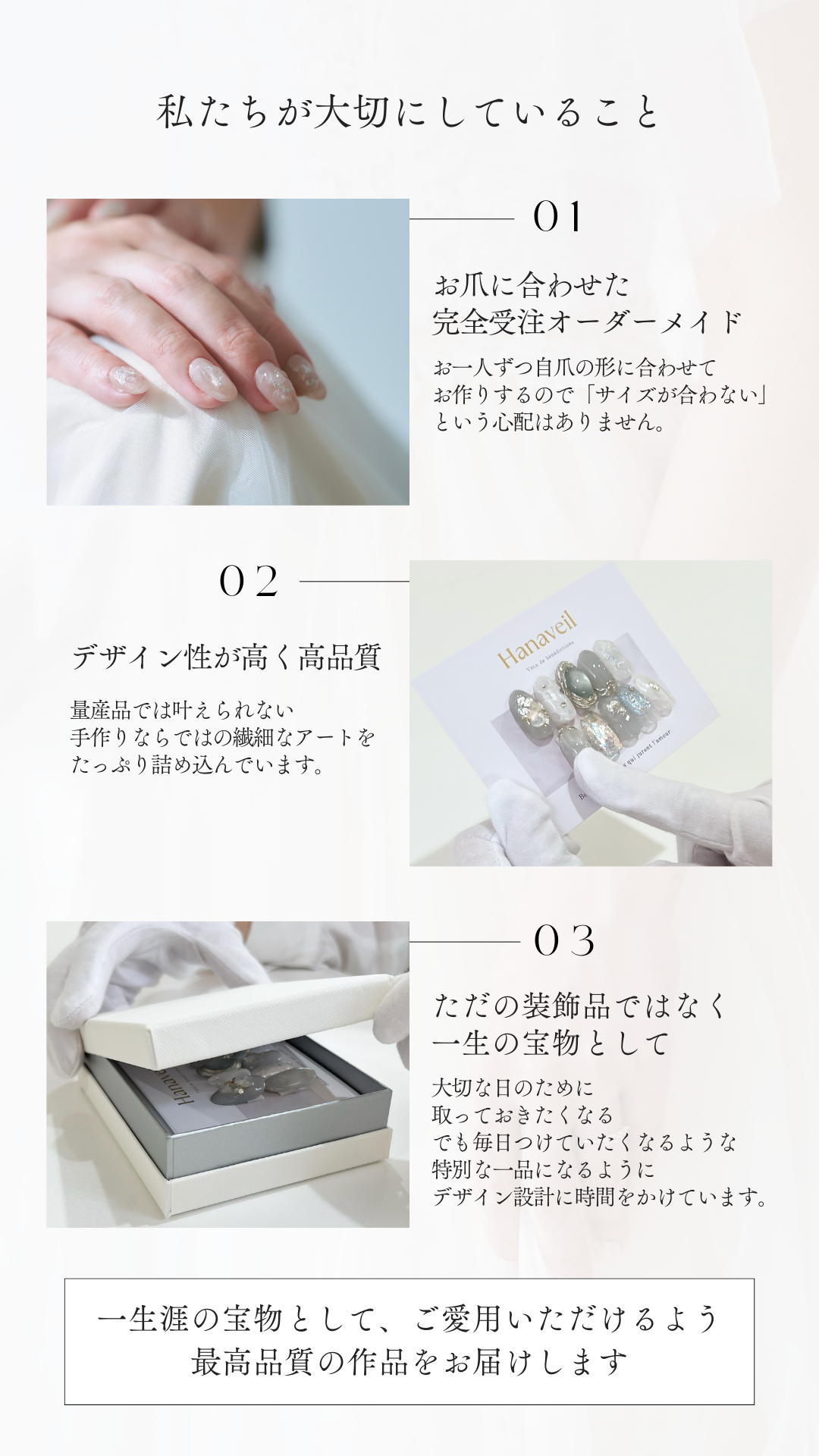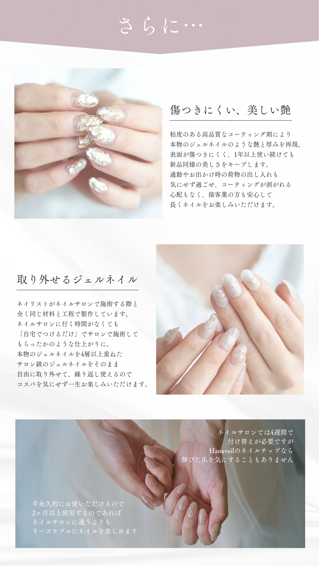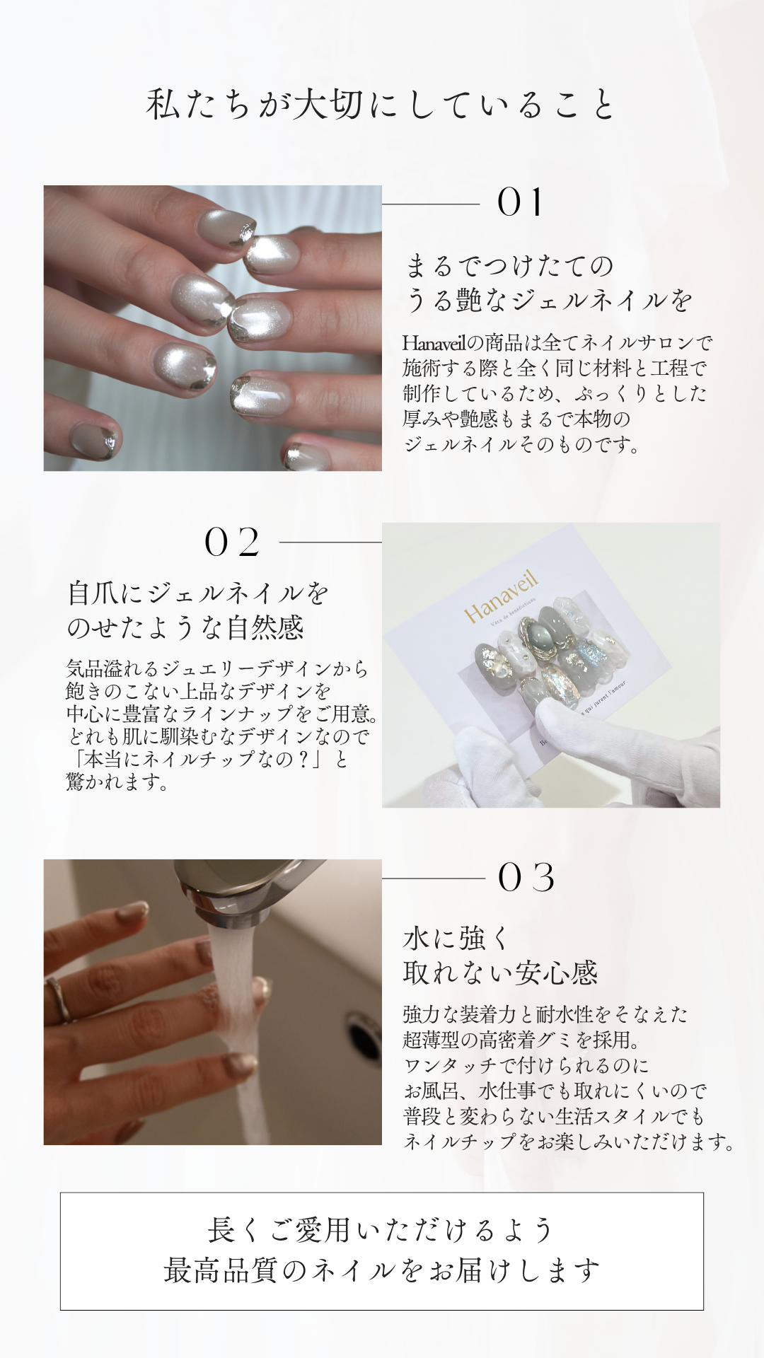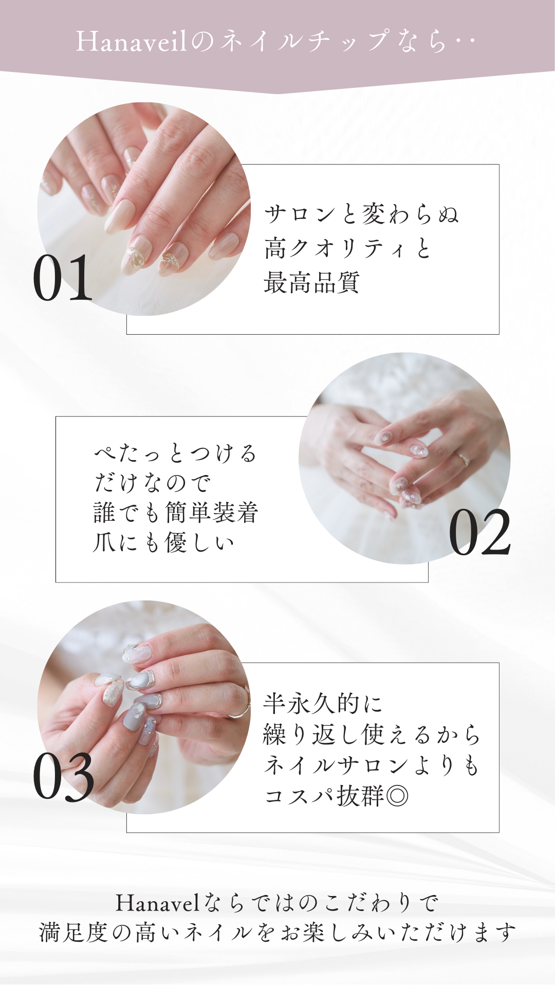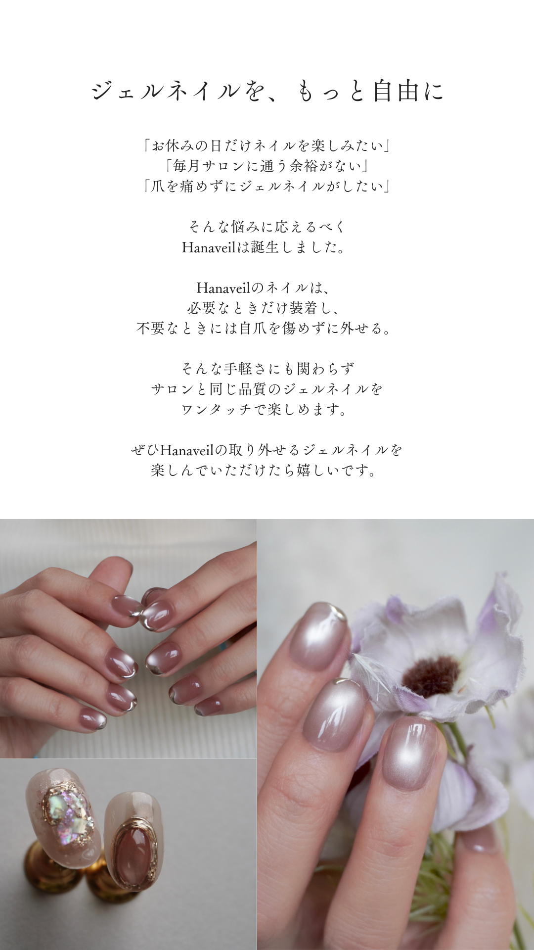 Hanaveilは、人生の特別な瞬間を彩るネイルチップをお届けしています。